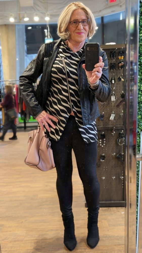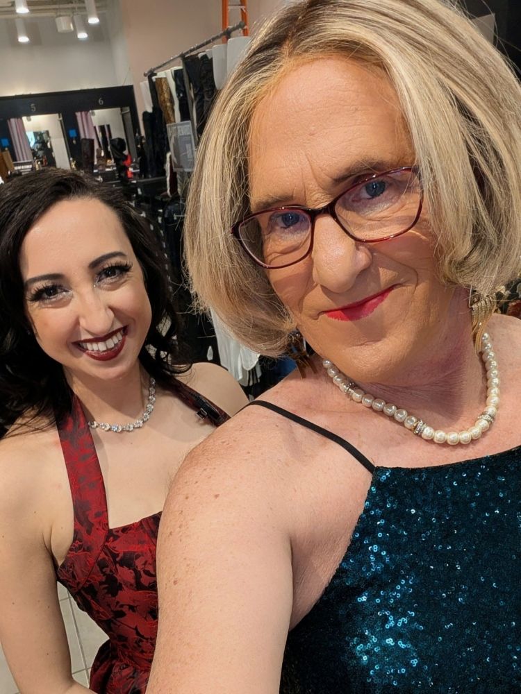 The place was a bar in my hometown, and the patrons were mostly my age range, but I didn’t see anyone I knew. There was a band playing mostly 50’s and early 60’s music–not necessarily my favorite–but it was fun to be out. Michelle’s co-workers, Gloria and Shelly–mother and daughter–were glad I came. FWIW, I had met Gloria and may have met Shelley previously. Gloria has seen me dressed–and boy me often shows up at Michelle’s salon to mow the lawn. Gloria was irritated how my bra was fitting–I wear padded bras–so she came to the other side of the table where we were sitting and tugged and yanked at my bra, while I laughed. Gloria and I had a fun conversation–she said she told her husband I was coming and he needed to behave (he was of an age where not all are CD tolerant) –but we both shared our appreciation of Michelle. Shelly said she wanted to go out together one night with Michelle and I, and I’m definitely up for that once I return to the US in early April (I have decamped to a Melbourne suburb once again–have some clothes here and hope to get out at least a couple of times).