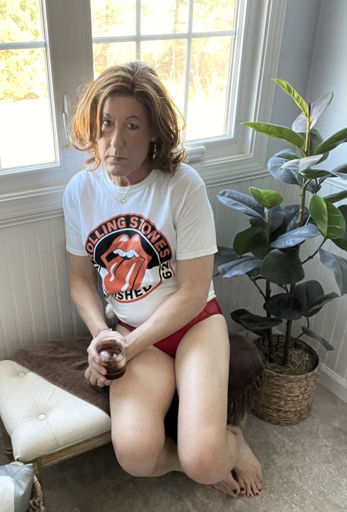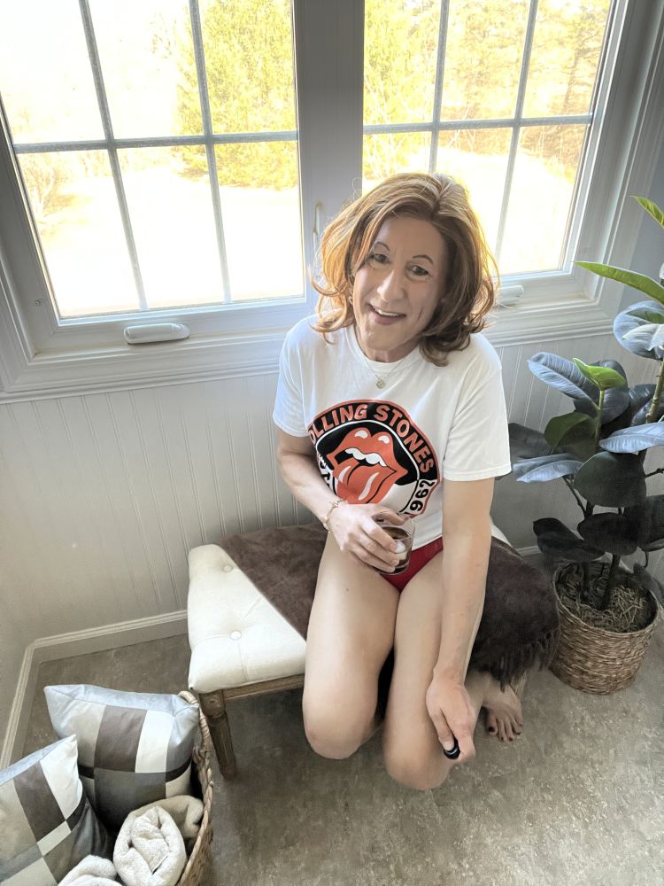 With a few Stones Tees in tow and wearing a perfect bra and panty set, it was playtime! Backstory, I adore a matching bra and panty set, usually tied into my outfit even though no one will know that but me. This day, I selected a bra purchased at least four years ago, which I call “Clifford, the big red bra”. If you have kids, you know who Clifford, the big red dog is, now connect the dots on this. It was perfect in all aspects with a pair of panties recently acquired. I felt amazing! A glass of Red Stag (okay, the first glass), great lingerie, the Stones, this is what happens.